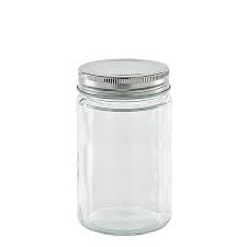 جار شیشه ایی استوانه ایی گرد در فلزی 11 سانت