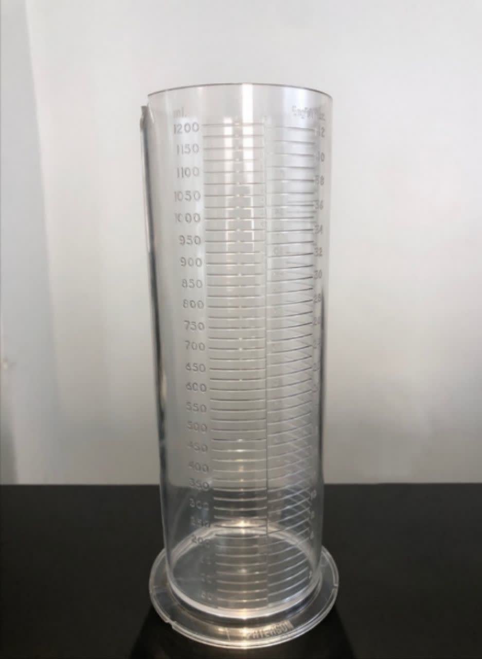 روی بدنه، اعداد مدرج برحسب میلیلیتر (mL) یا سانتیمتر مکعب (cm³) نوشته شده است.