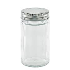 جار شیشه ایی استوانه ایی گرد در فلزی 16 سانت