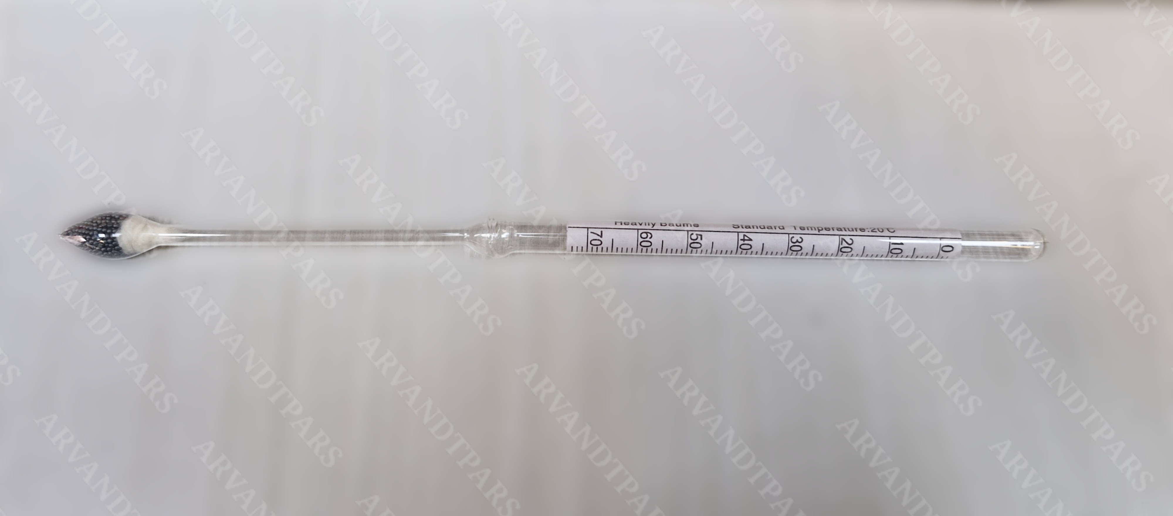 این دستگاه مقدار چگالی مایع نسبت به آب را نشان میدهد، اما بهجای عدد چگالی (مثل 1.25 g/cm³)، عددی به نام درجه بومه نمایش داده میشود.