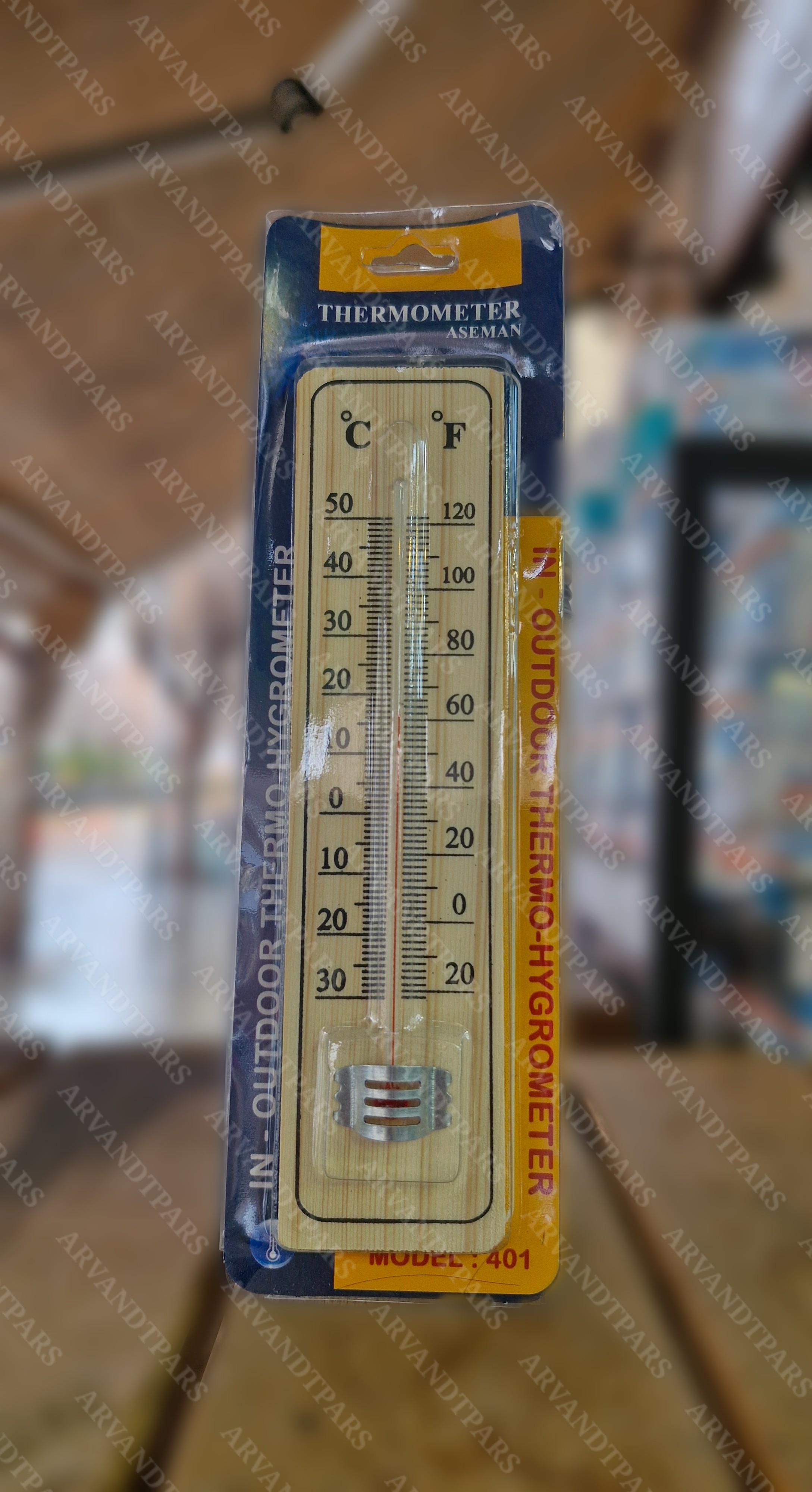 این دماسنج دیواری بهوسیله الکل قرمزرنگی که در لوله شیشهای وسط آن قرار دارد, محیط را اندازهگیری و برحسب سانتیگراد و فارنهایت نمایش میدهد. لوله و محفظه الکل در این دماسنج شیشهای و شفاف بوده و بهراحتی قابل دید است.